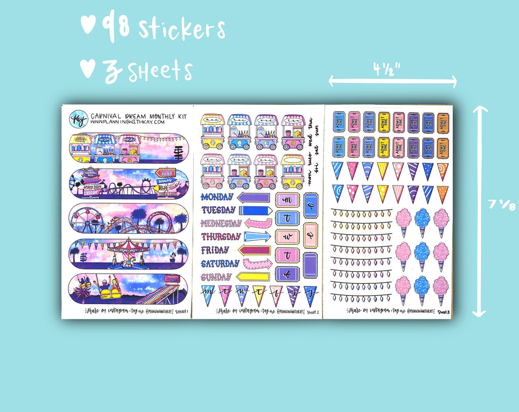 This is the DIGITAL DOWNLOAD version of the Carnival Dream Monthly Kit!  Use these in your digital planner or print them out at home.